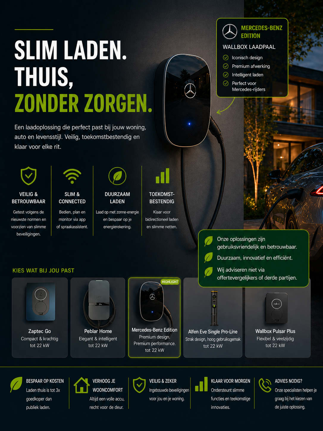 Laad uw elektrische auto gemakkelijk en snel op met een laadpaal aan huis, op maat geïnstalleerd.