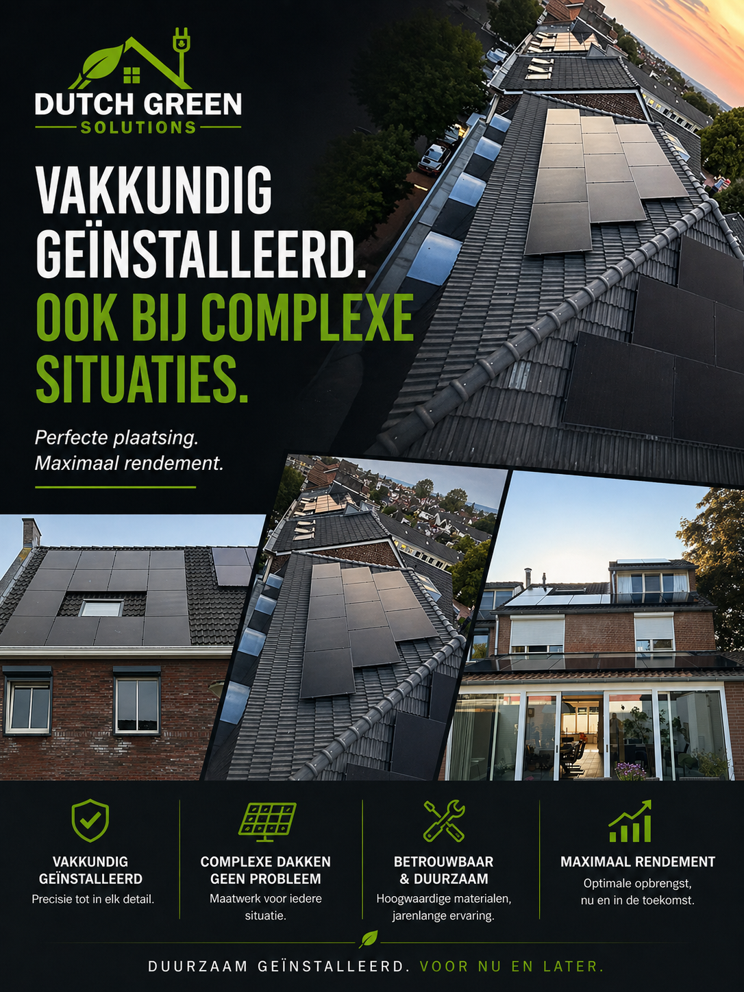 Dutch Green Solutions bestaat uit een team van specialisten op het gebied van duurzaam wonen, leven en duurzame energie. Zo hebben wij meerdere Enphase specialisten in dienst, leveren wij uitsluitend high quality service en zijn al onze installateurs Installq gecertificeerd. Hierdoor bent u verzekerd van een betrouwbare installatie én de daarbij behorende 25 jaar installatie- en productgarantie. Of u nu een particulier bent of een zakelijke klant; wij staan graag voor u klaar.