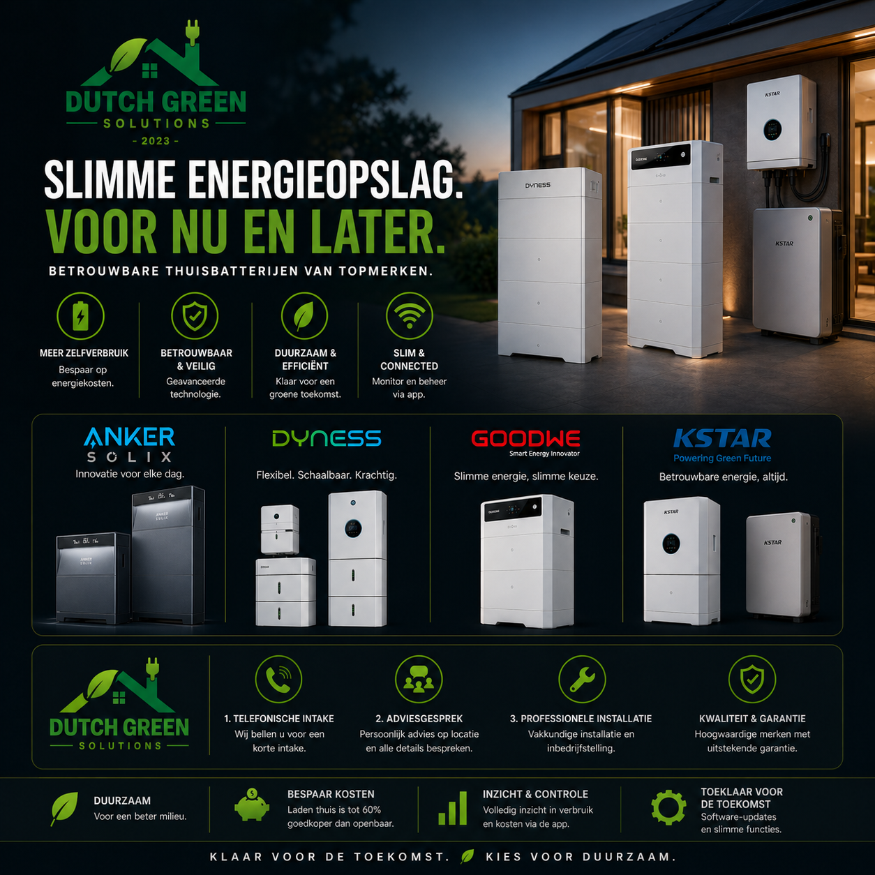 Sla overtollige zonne-energie op en gebruik het wanneer het u uitkomt, zelfs bij stroomuitval.